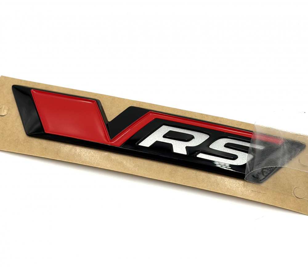 OEM 5E3853679A Originální Škoda VRS logo / nápis černé s červenými detaily, vhodné pro Škoda Octavia IV RS Kodiaq II RS